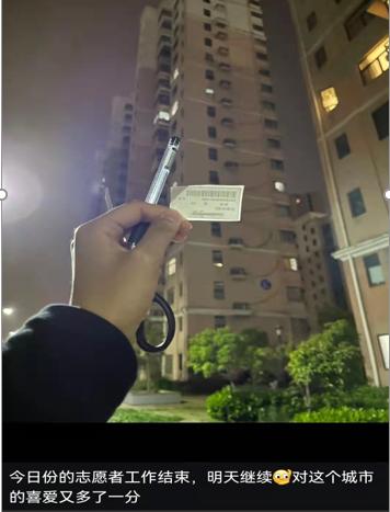 本网讯(基础医学院 )“今日份的志愿者工作结束,明天继续,对这个城市的喜爱又多了一分”。这是彭智伟博士在学校人才公寓结束一天志愿者工作后发的朋友圈,这段简简单单的文字,真是疫霾之下的一抹阳光。