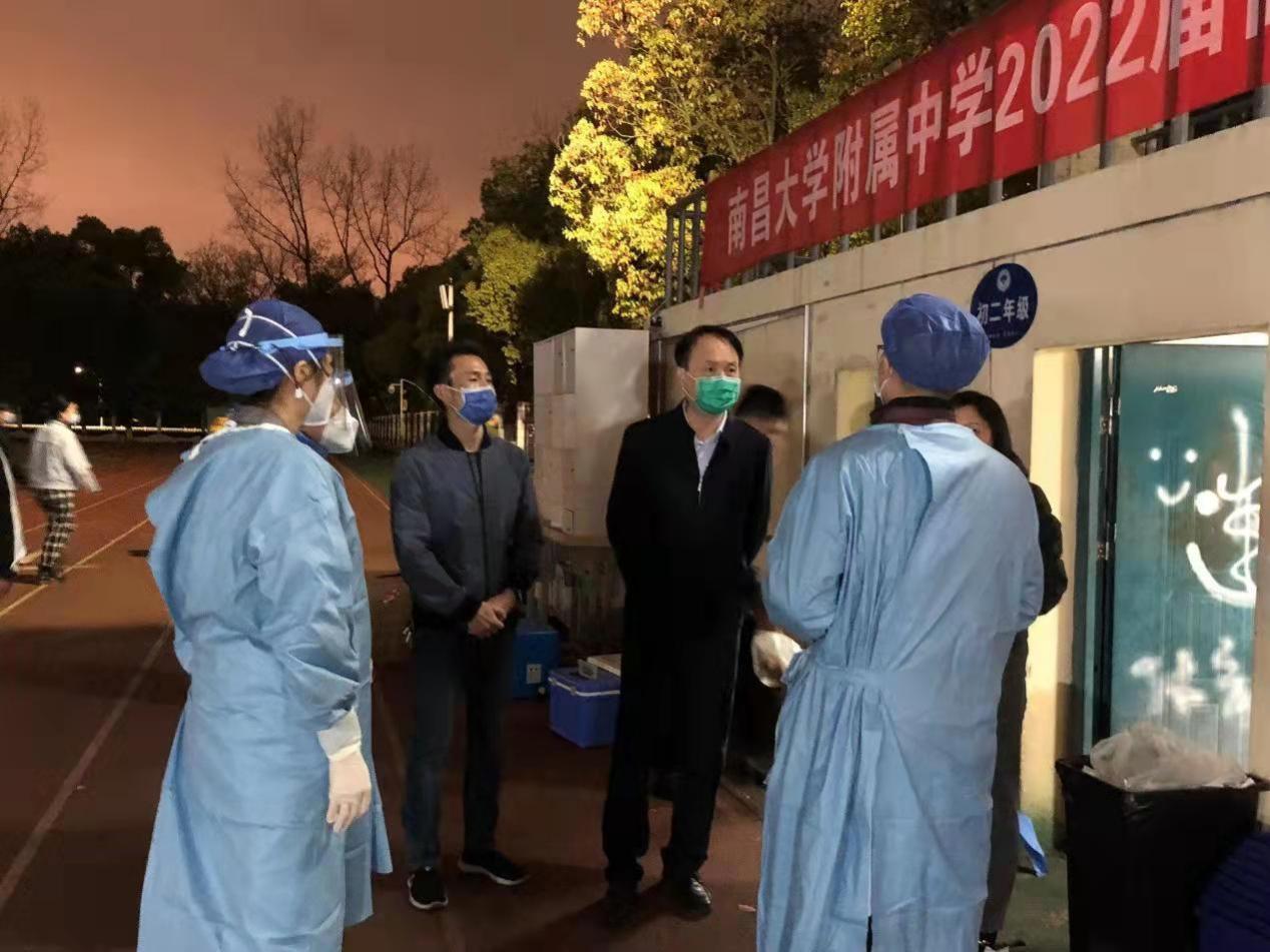 接到学校与医院的号令,对口支援南昌大学青山湖校区核酸采样工作组迅速响应,白衣执甲,逆行而战。医院党政领导班子谭友文书记与黄霞副院长高度重视,多次前往核酸采样现场,时刻关注采样工作进展,为工作的有序开展进行全力部署。工作组成员连续作战,不畏险阻,无惧风雨,始终坚守抗疫一线。