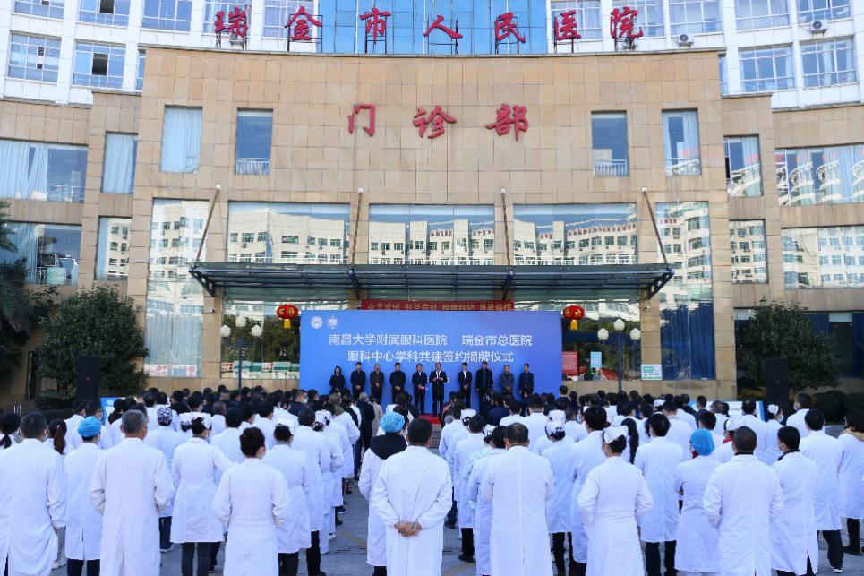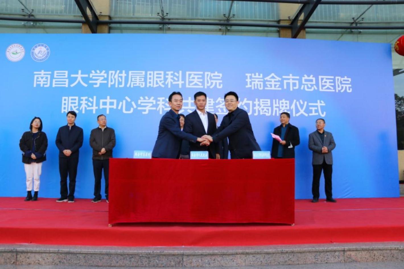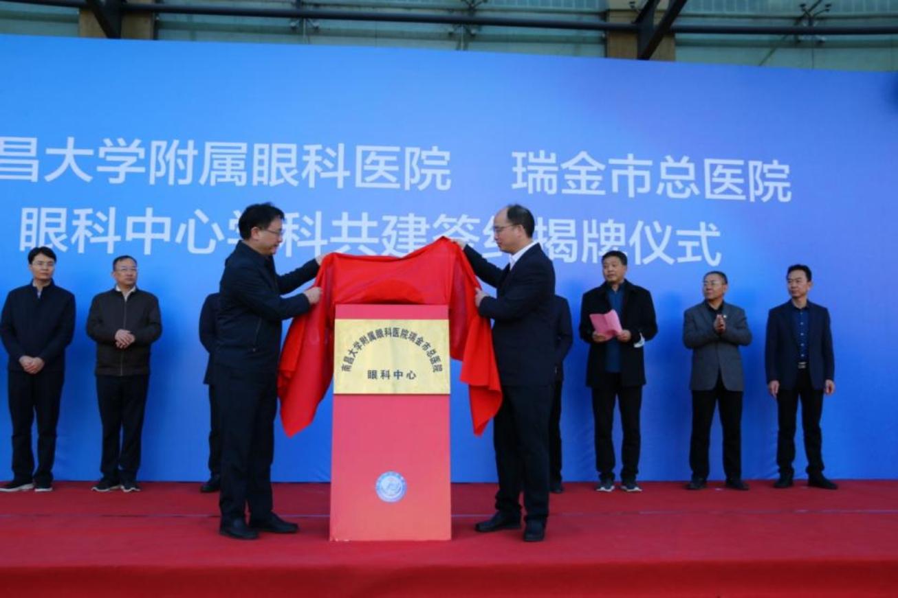 仪式上,刘春林致辞、王仕旺讲话,并共同为南昌大学附属眼科医院-瑞金市总医院眼科中心揭牌;游志鹏、李鑫、、王传明签订共建合作协议书。