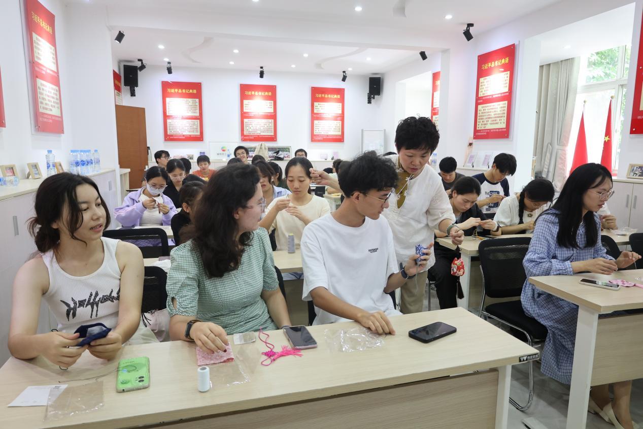 本网讯(学生资助中心)为推进资助育人工作与传统文化教育相结合,提高学生动手能力和文化素养,5月23日,学生资助中心在学生社区开展了“我手织我心,自强助成长”第三期手工技能提升活动。为迎接即将到来的端午佳节,本次活动特邀手工讲师指导同学们制作端午特色“粽子香囊”。各学院同学积极响应,“圆梦南大”项目受助学生和多名新疆籍学生踊跃报名参与活动。