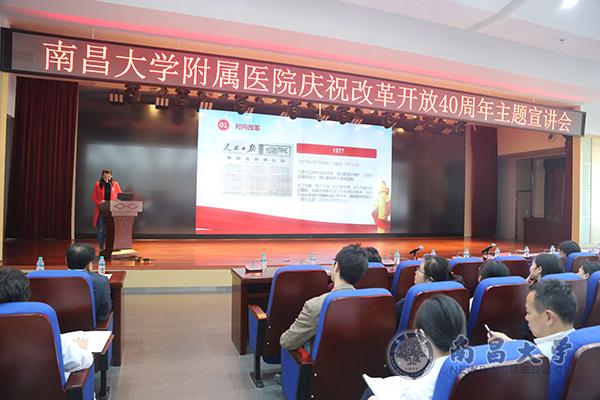 本网讯(第四附属医院)为庆祝改革开放40周年,11月1日,第一附属医院、第四附属医院、附属口腔医院、附属眼科医院在第一附属医院共同举办庆祝改革开放40周年主题宣讲会。各附属医院领导、党员干部职工共300余人参加了主题宣讲会。