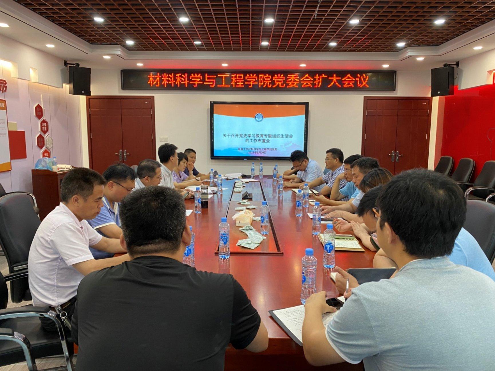 本网讯(材料科学与工程学院)6月30日,材料科学与工程学院召开党史学习教育专题组织生活会布置工作会。学院党政主要负责人、领导班子成员、各教工、学生党支部书记参加会议。