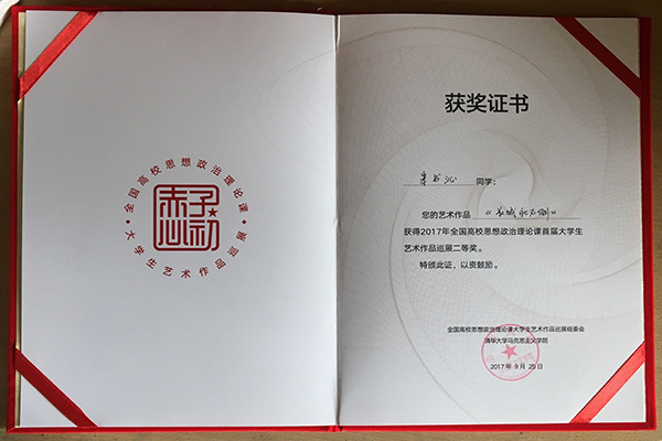 本网讯(艺术与设计学院)根据《教育部办公厅关于开展高校学生思想政治理论课学习成果展示系列主题活动通知》要求,教育部社科司、思政司近期在清华大学马克思主义学院举办“赤子初心”全国高校思想政治理论课学生艺术作品巡展活动圆满落幕,我校艺术与设计学院和马克思主义学院选送的油画作品《长城永不倒》喜获二等奖!
