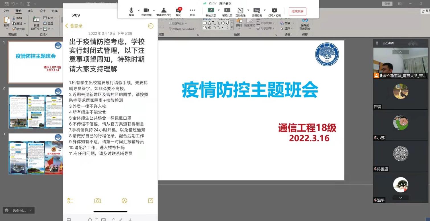3月16日,学院疫情防控工作部署会后,全体辅导员便第一时间召开主题班会,传达当前疫情防控形势与学校相关政策,并做好留校住宿的准备。战“疫”一线,他们与学生“心连心”,共同画好“同心圆”。