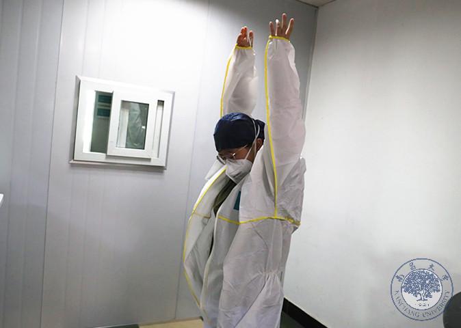 早上7点,检验科主任李丽萍和她的“新冠”工作小分队的队员们准时到达医院,开始了这一个月来的每天必备动作——“武装”自己:防护服、护目镜、帽子、口罩、鞋套、手套等物品熟练穿戴好后,便毫不犹豫地走入了新冠病毒检测实验室。