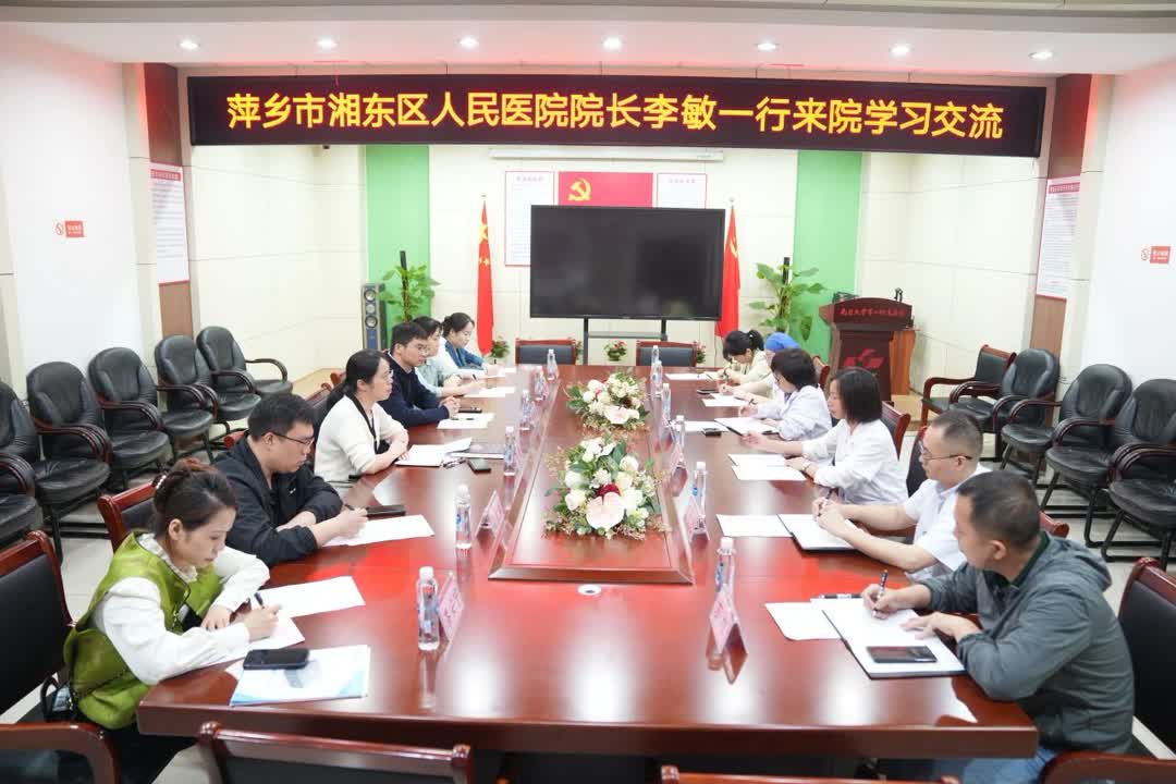 6月5日,萍乡市湘东区人民医院院长李敏一行6人前来参观学习。医院院长冯珍、相关职能科室和临床科室参加了座谈交流会。