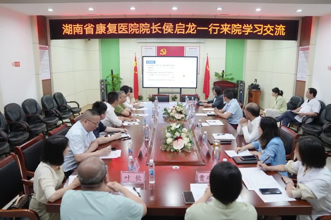 6月7日,湖南省康复医院院长侯启龙、副院长张件云携医院职能科室和临床科室一行9人来医院参观学习。院长冯珍,副院长刘泽林、白洋以及相关职能科室和临床科室参加了座谈交流会。