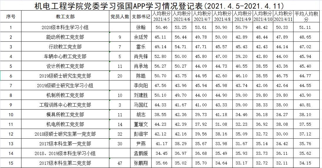 2020年11月,机电工程学院学习强国人均学习分数还是个位数,排在全校52个二级学习组织中末尾,2021年4月7日,学院人均学习分数跻身第2名,并长期稳定在52个二级学习组织前5名,人均分数也从个位数上升至近40分。这对于拥有近3000名师生,959名学习强国学员的机电工程学院而言,是凝心聚力抓学习的结果。