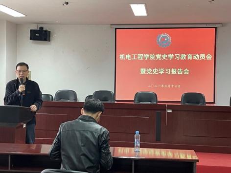 3月16日,机电工程学院党史学习教育动员大会暨学习报告会在机电楼D210召开,学院全体党员教师参与,院党委书记付广华在会上作动员讲话,并开展了第一次辅导报告,此次会议的成功召开拉开了机电工程学院党史学习教育大幕。
