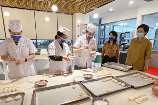 6月5日下午,附属口腔医院红谷滩院区食堂热闹非凡。30余名职工齐聚一堂,“包子制作活动”拉开了美食研学盛宴的序幕。在面点师傅的指导下,职工们纷纷动手发面、揉面,并学习如何擀皮、包馅、捏褶。不到半小时,15公斤的面粉就全部变成了香喷喷的包子。当品尝到自己亲手制作的包子后,每个人的脸上都洋溢着满足和自豪的笑容。