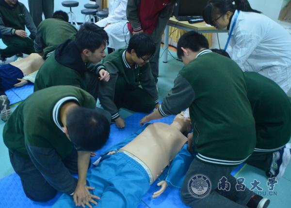 “如果你是医护人员,在火灾现场,是先救扭伤腿的人,昏迷的人,还是流血的人?”负责讲解心肺复苏知识的3S救护协会队员用提问引出讲解,同学们迅速地给出了正确的答案。在短短几十分钟讲解时间里,讲解员不仅科普了急救知识,还让同学们体验了心肺复苏模拟训练。