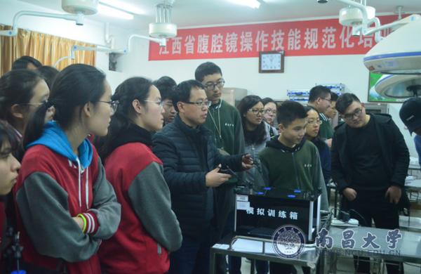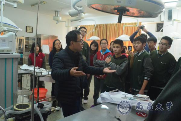 在医学实验教学中心六号楼,中心副主任况海斌介绍了医生上手术台之前的准备工作。如手术前医生们都要仔细地将手洗干净,推门要用背推,手洗净之后就不可乱碰其他地方;做阑尾手术时,医生要与患者亲密配合,找准病人麻醉的位置。学生们积极提问,况海斌耐心地答疑解惑。