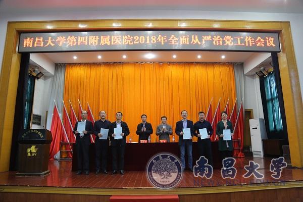 本网讯(第四附属医院)4月26日,南昌大学第四附属医院召开2018年全面从严治党工作会议,院党委书记张清华,党委副书记、纪委书记曾力出席会议并作工作报告。会上,党、政主要领导与院党委委员、总支书记、支部书记签订发放《落实全面从严治党主体责任责任书》。