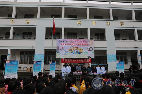 本网讯(附属口腔医院)9月21日上午,附属口腔医院前往上饶市玉山县程村村开展了“脱贫攻坚不忘初心 口腔健康逐梦前行”健康扶贫系列活动。医院副院长欧晓艳带领口腔医疗队伍15余人开展本次健康扶贫活动。我校驻程村村工作组、程村小学师生参与本次活动。