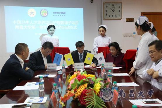 吕军、胡秀忠分别发表了热情洋溢的讲话。三方代表共同签署了服务合作协议,至此国家卫健委“中国护理管理人才培养项目”在第一附属医院正式启动。