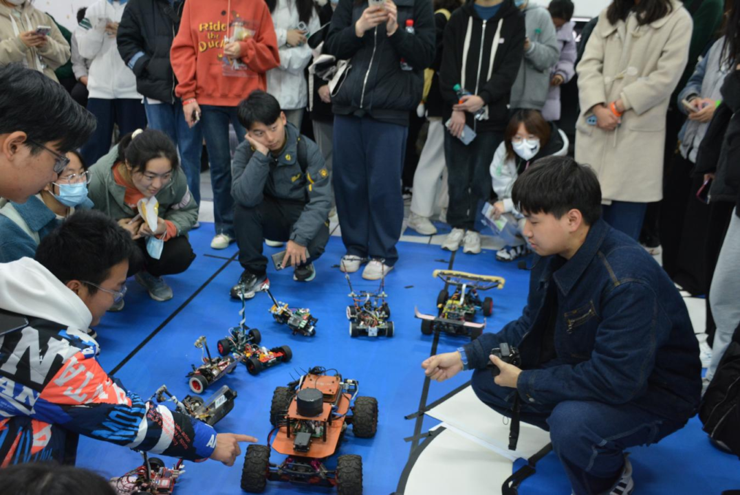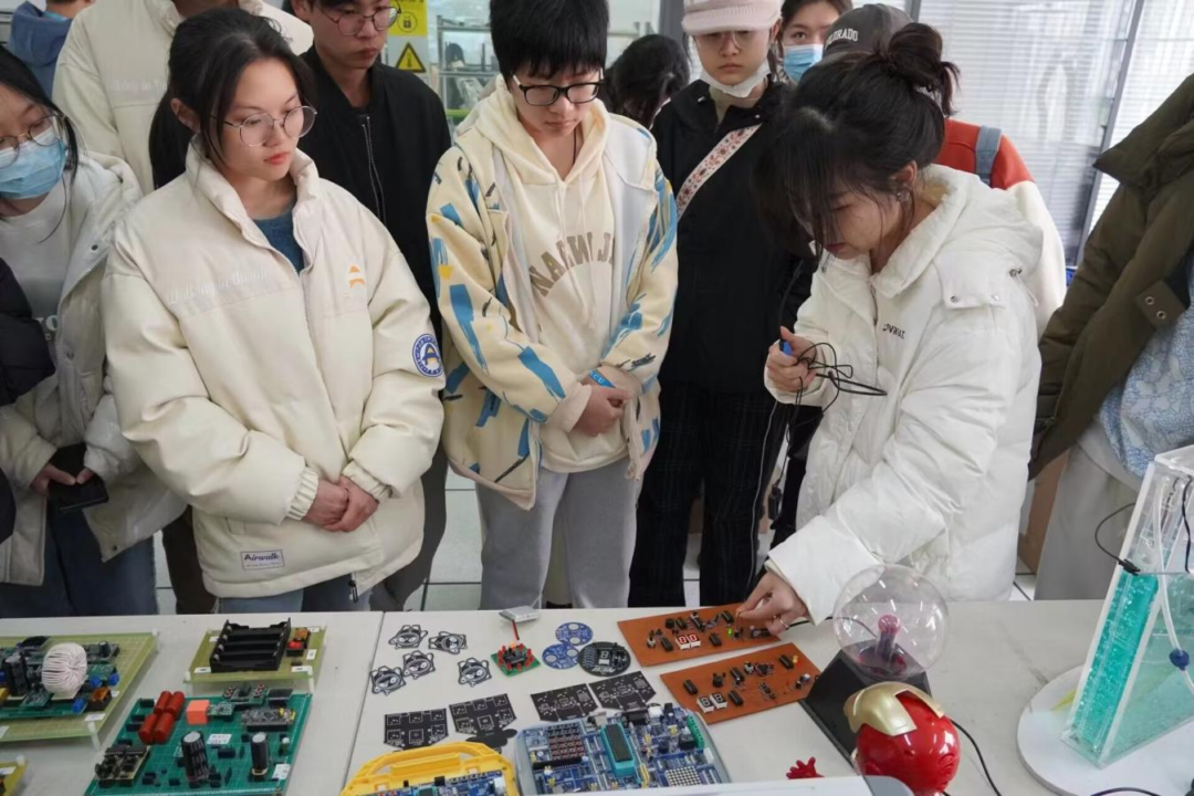 图为学子们学习智能车制造原理