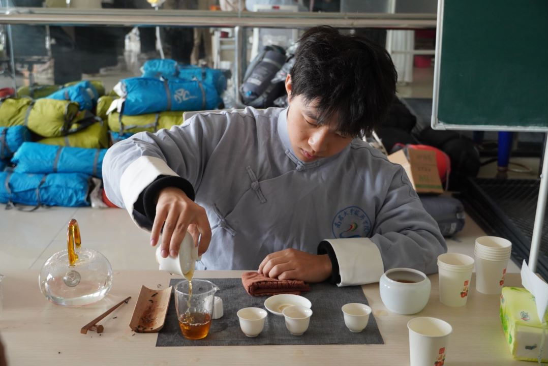 图为学生观看茶艺展示