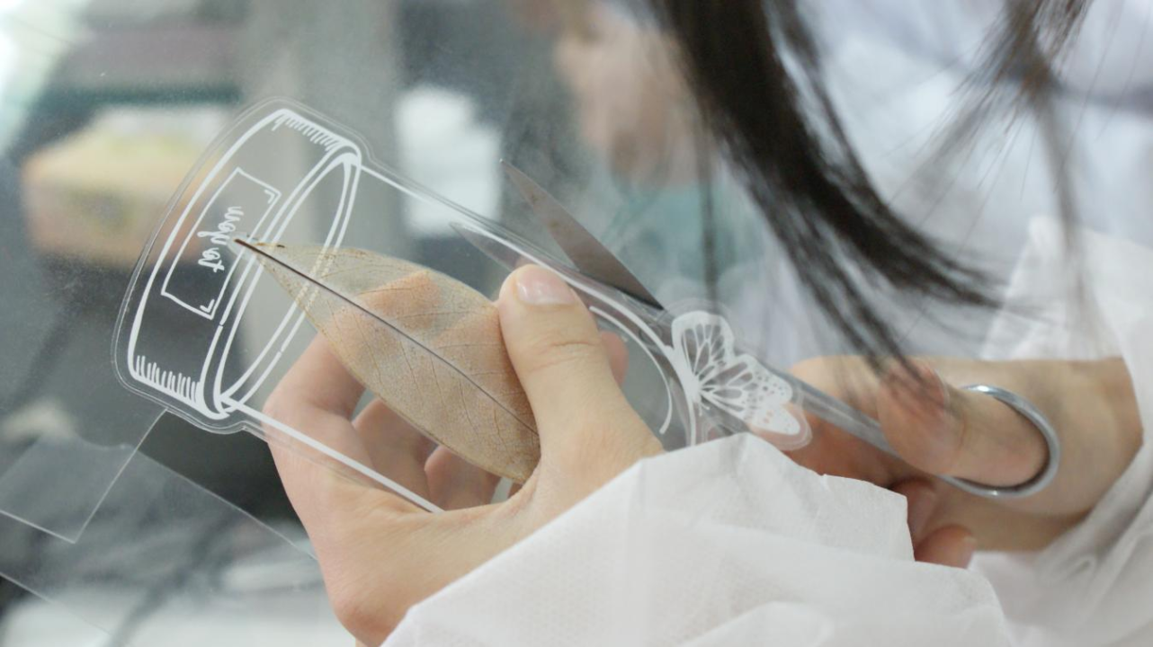 图为学子于生物实验室制作叶脉书签