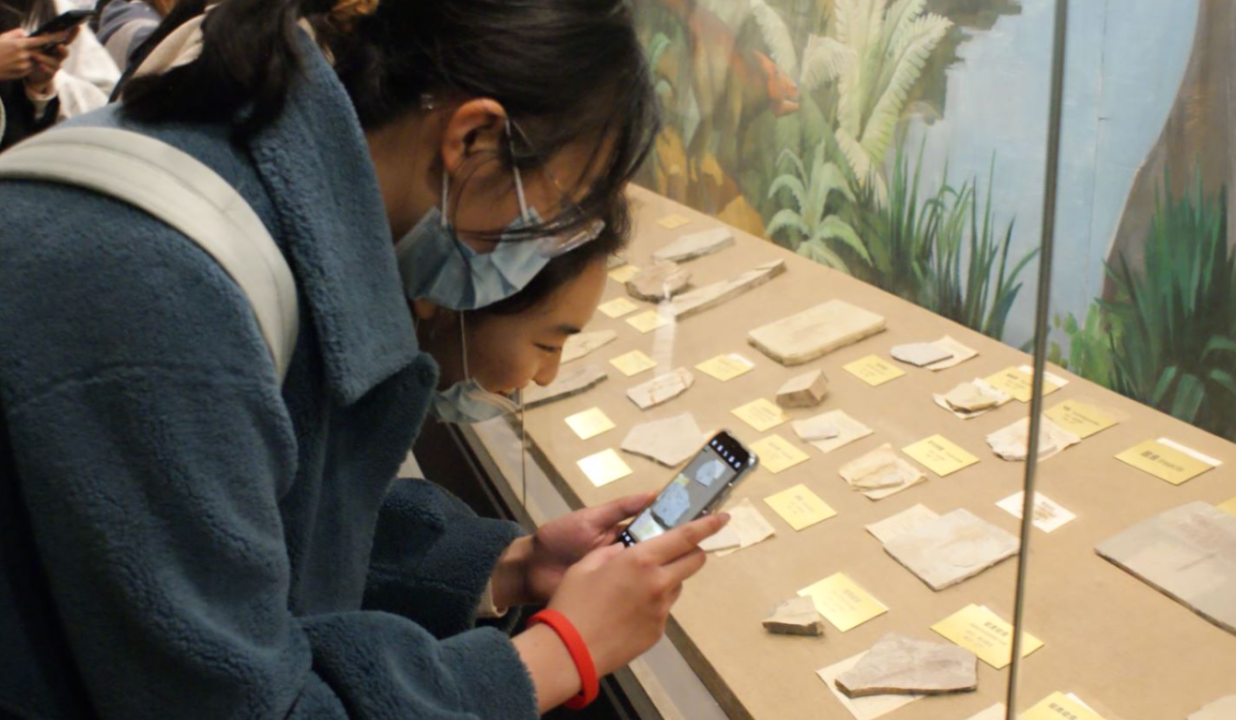 图为学子参观生物博物馆