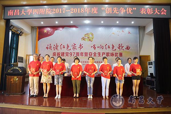表彰会结束后举行了“庆七一”合唱比赛,各总支(支部)组成的10支代表队同台竞技。经过激烈角逐,政工后勤党支部代表队获得一等奖,行政党支部代表队、门诊社区党支部代表队获得二等奖,向塘党总支代表队、内一党支部代表队、医技党支部代表队分别获得三等奖。