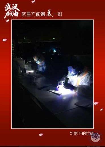 本网讯(附属口腔医院)来武昌方舱医院工作快满月了。由于4小时的轮班制,夜幕下方舱内工作时间更多,手上的小小手电筒为我平凡的护理工作带来很多方便。