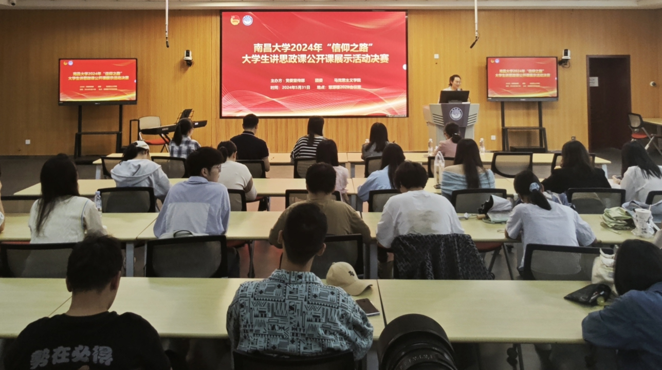 本网讯(刘彤)近日,由党委宣传部、团委、马克思主义学院联合主办的南昌大学2024年“信仰之路”大学生讲思政课公开课展示活动决赛在慧源楼202B教室顺利举行。校团委书记邹立旋、融媒体中心副主任邱晓怡、党委研工部副部长王丽坤、马克思主义学院副院长蒋田鹏、校团委副书记叶晖参加活动,60余位师生前来观摩学习。