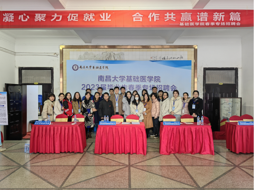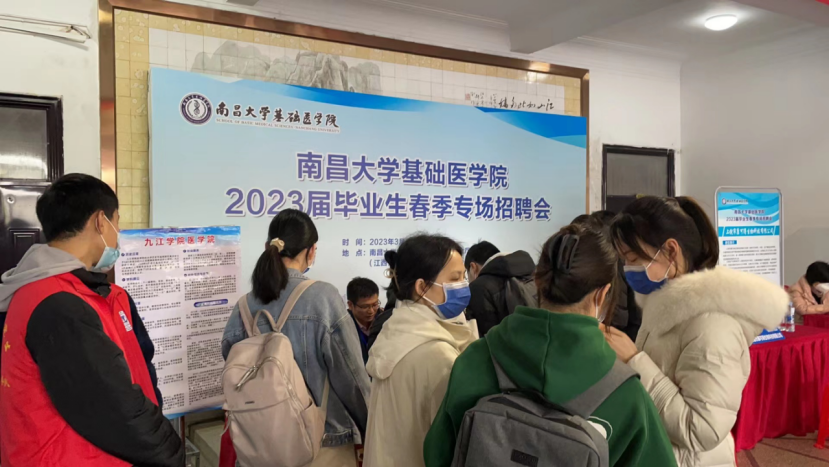 本网讯(基础医学院)为切实推动2023届毕业生就业工作,努力为毕业生和用人单位搭建一个面对面交流、近距离沟通的双选平台,3月24日,基础医学院在东湖校区教学大楼一楼大厅举办“凝心聚力促就业 合作共赢创未来”学院2023届毕业生春季专场招聘会。