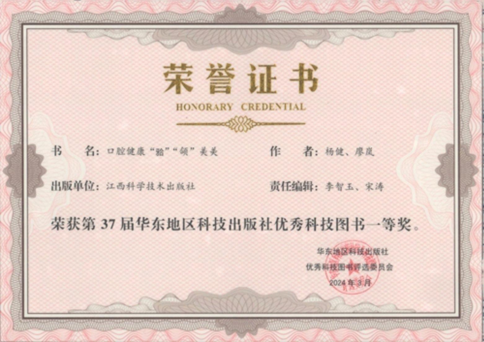 本网讯(通讯员陈尚文)4月12日,由南大口腔医院杨健、廖岚两位教授联合主编的《口腔健康“(牙合)”“颌”美美》口腔健康科普书,荣获第37届华东地区科技出版社优秀科技图书一等奖。
