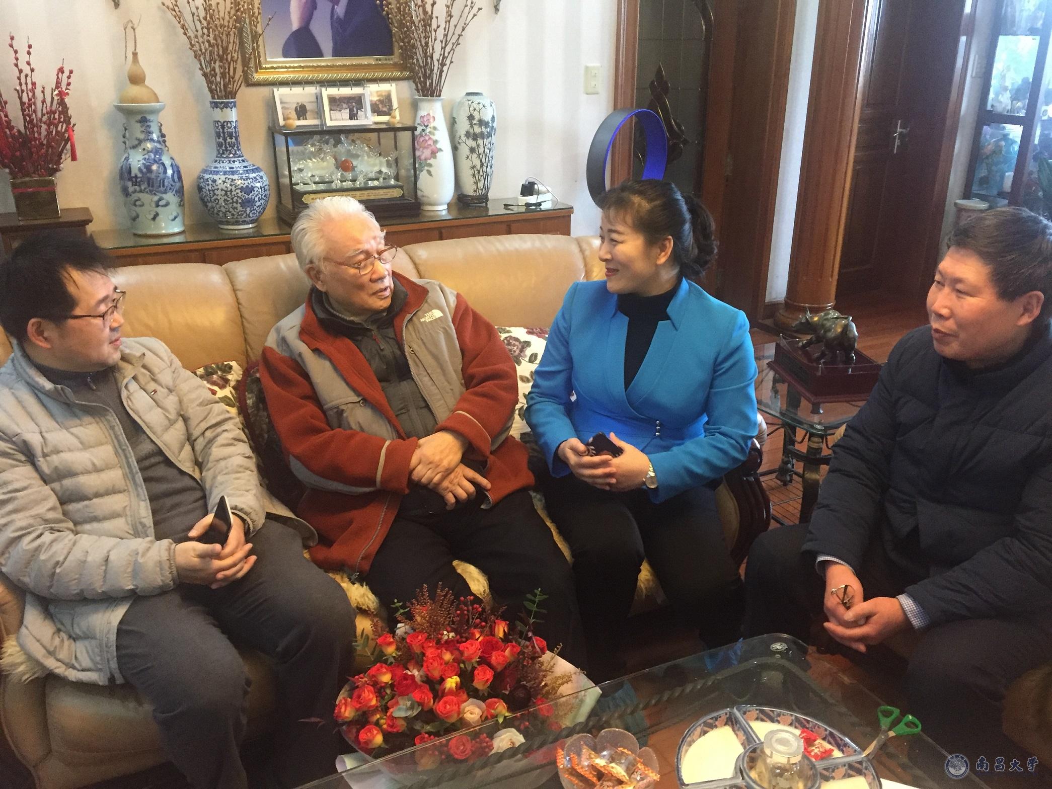 在邱老家中,廖岚、杨健向他介绍了南大口腔医院近年来的发展情况,详细询问了邱老的生活状况,感谢他多年来为医院的发展作出的贡献,并送上鲜花和慰问品,同时盛情邀请他在今年春暖花开的季节来江西传经送宝。
