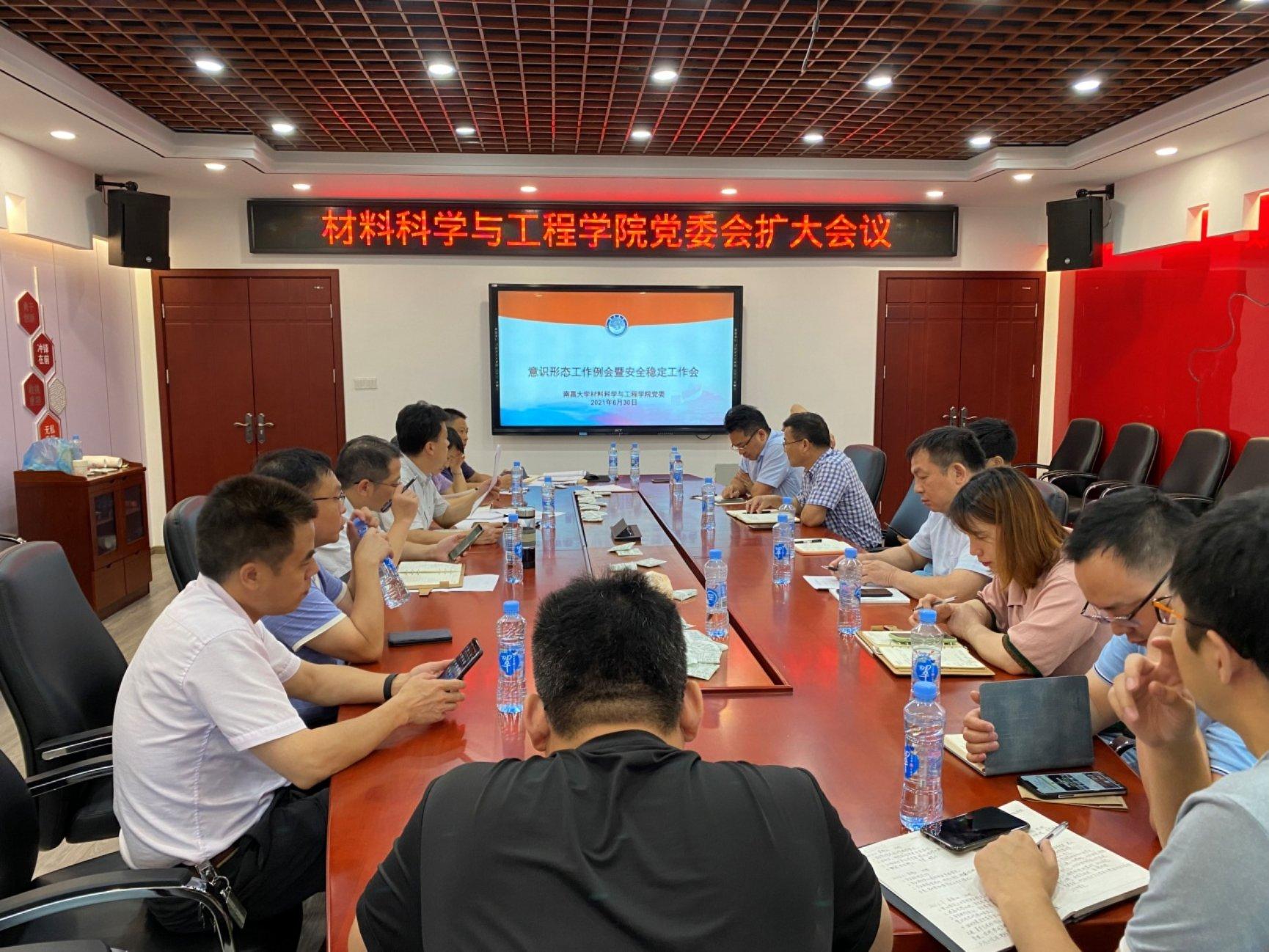 本网讯(材料科学与工程学院)6月30日上午,材料科学与工程学院召开2021年上半年度意识形态工作例会暨安全稳定工作会议。学院党政主要负责人、领导班子成员、各教工、学生党支部书记参加会议。