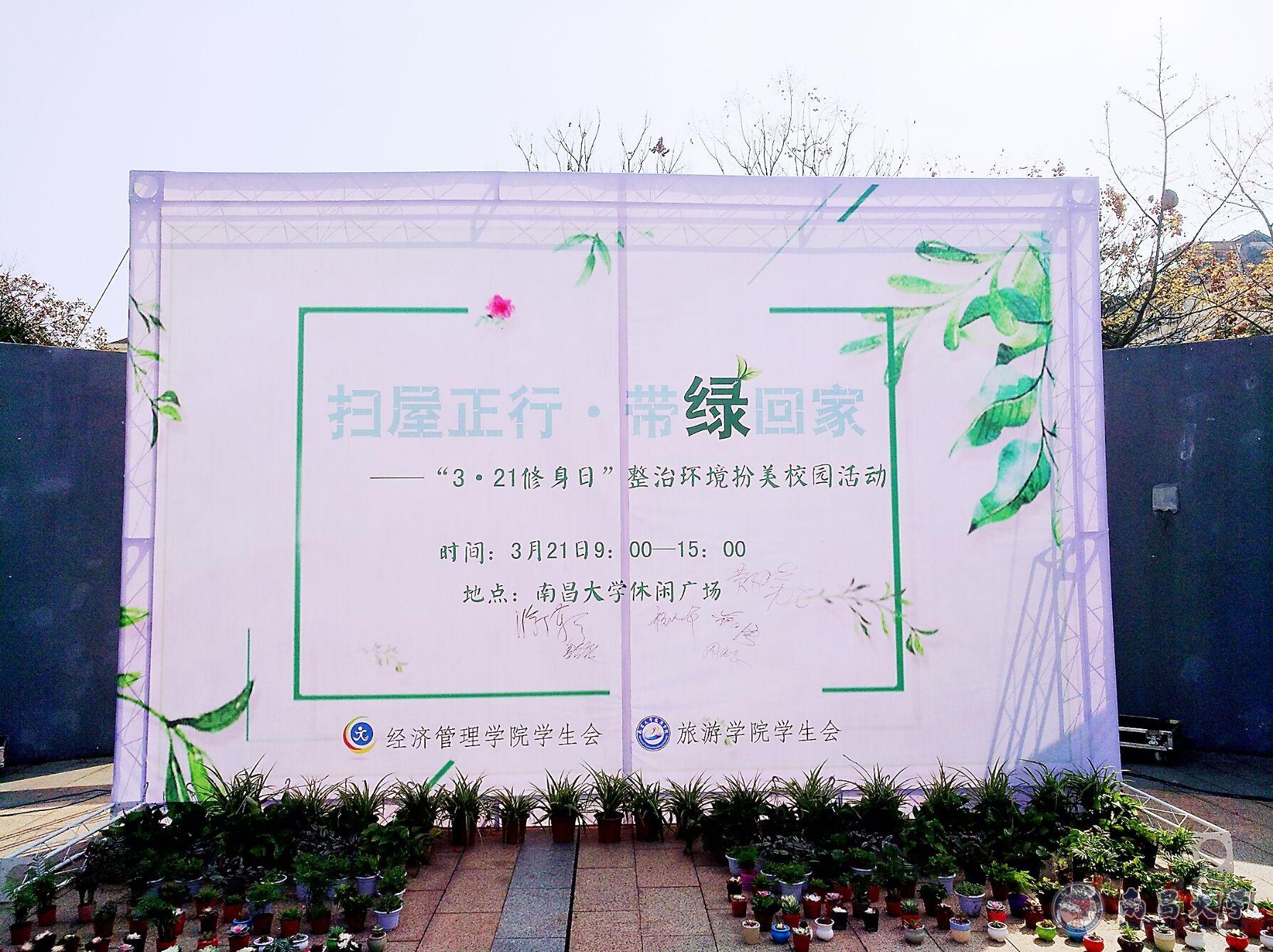 本网讯(经济管理学院、旅游学院)3月21日春分节气,阳光明媚,万物复苏,正是修身好时节,由经济管理学院和旅游学院共同举办的“扫屋正行,带绿回家”3·21修身日整治环境扮美校园活动在休闲广场启动,江西发展研究院院长黄细嘉出席启动仪式,学工处、后勤保障部及学院师生代表200多人参加活动。