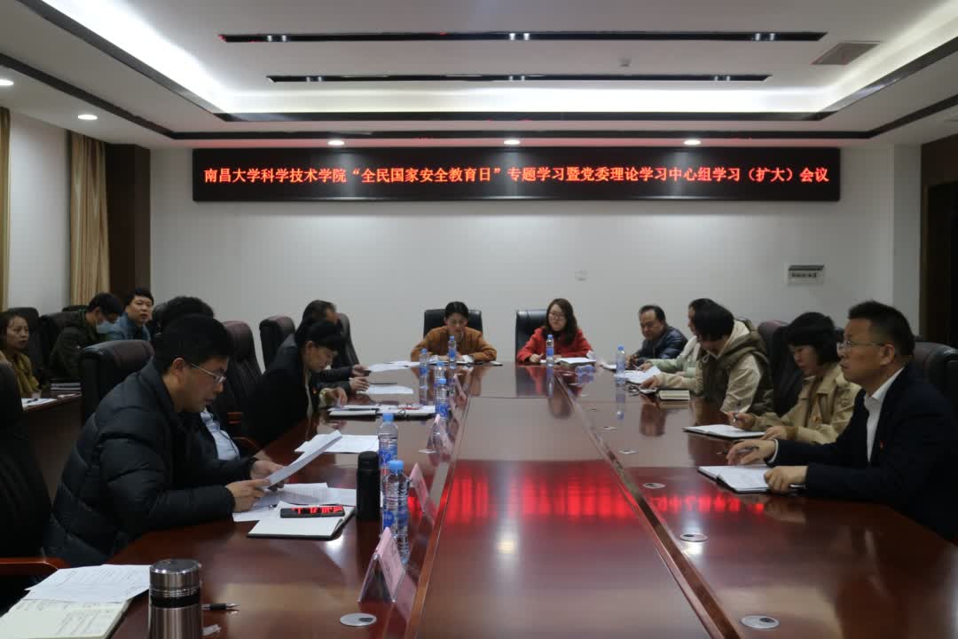 本网讯(科学技术学院)4月15日是第八个全民国家安全教育日,为进一步规范学院的国家安全人民防线建设工作,营造安全稳定的社会政治环境,4月6日下午,科学技术学院召开“全民国家安全教育日”专题学习暨党委理论学习中心组学习(扩大)会议,就国家安全、政治安全教育开展专题学习,增强与会人员的政治大局意识,提高政治敏锐性。