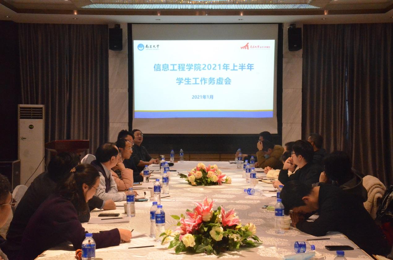 本网讯(信息工程学院 通讯员 谭潭)“2021年学生工作到底要怎么干?”“辅导员队伍建设要怎么抓?”“党建品牌要怎么建设?”“思政工作和新工科建设如何结合起来?”……年初寒冬,南昌大学信息工程学院寻求发展、追求跨越的脚步声愈发铿锵。1月23日下午,信息工程学院党委召开务虚会,领导班子成员、专业教师代表和辅导员代表坐在一起,来了一次别开生面、意义非凡的“头脑风暴”。这次要议的,是2021年和“十四五”期间学生工作具体怎么干的问题。