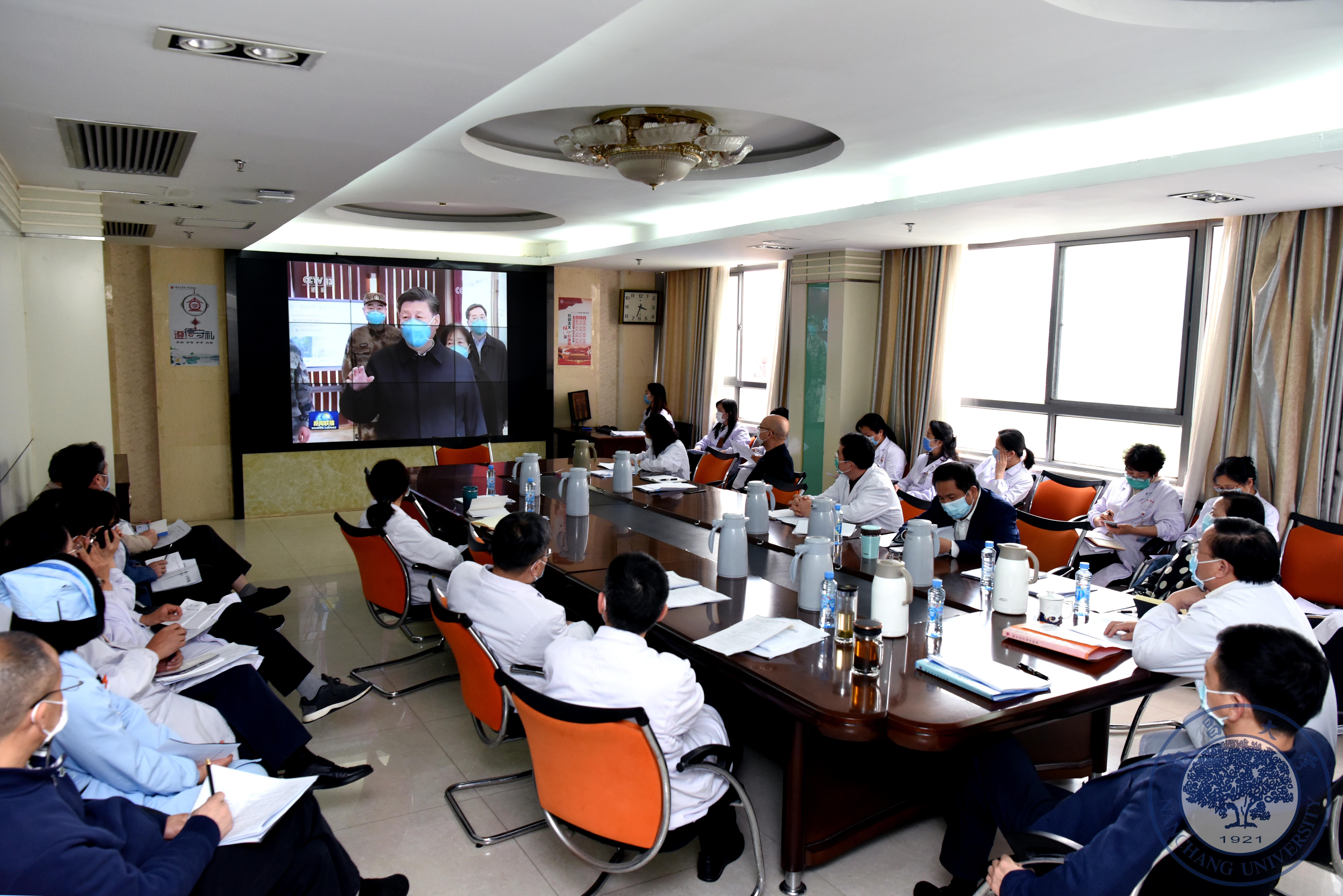 会上,大家集中观看了中央新闻联播《关于习近平总书记在湖北省考察新冠肺炎疫情防控工作》。