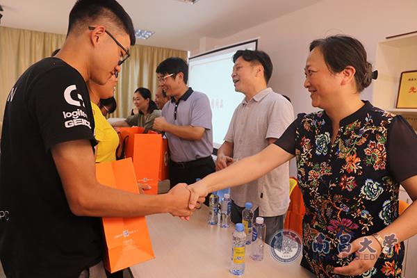 领导老师们为学生送上了中秋礼物和节日祝福,并一同合影留念。
